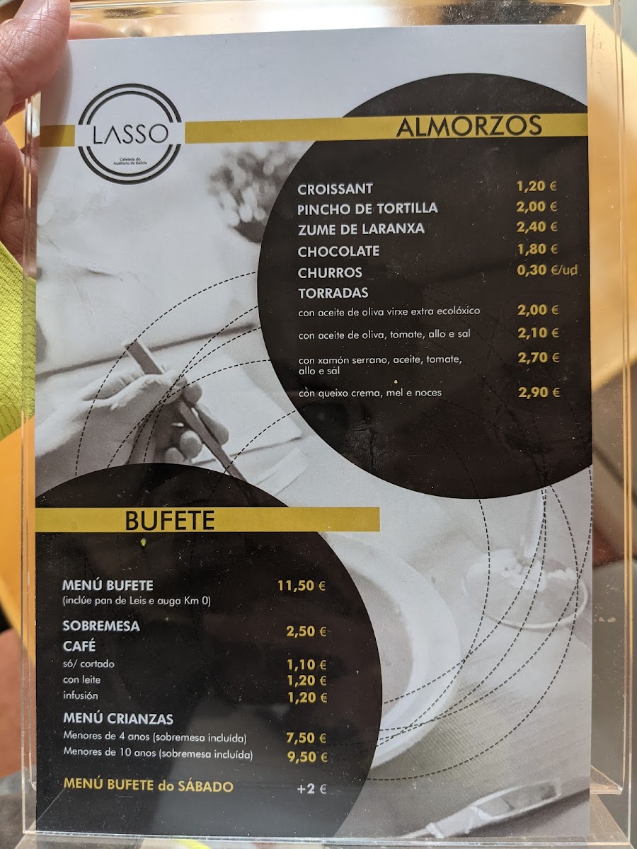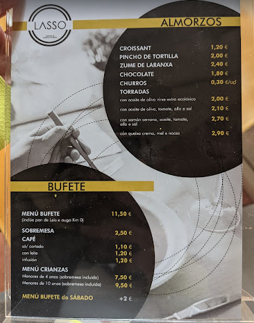Welcome to Cafeteria-Restaurante Lasso, a charming coffee shop nestled in the heart of Santiago de Compostela, at Av. do Burgo das Nacions. This café brings a delightful menu that offers a perfect blend of traditional and contemporary dishes. By day, the restaurant serves a Menú do Día from Monday to Friday, featuring a buffet-style selection now presented as individual portions due to health protocols. Guests can savor delicious salads, hearty soups, and a variety of main courses including meat, fish, and vegetarian options—all for just €10, including bread and water.